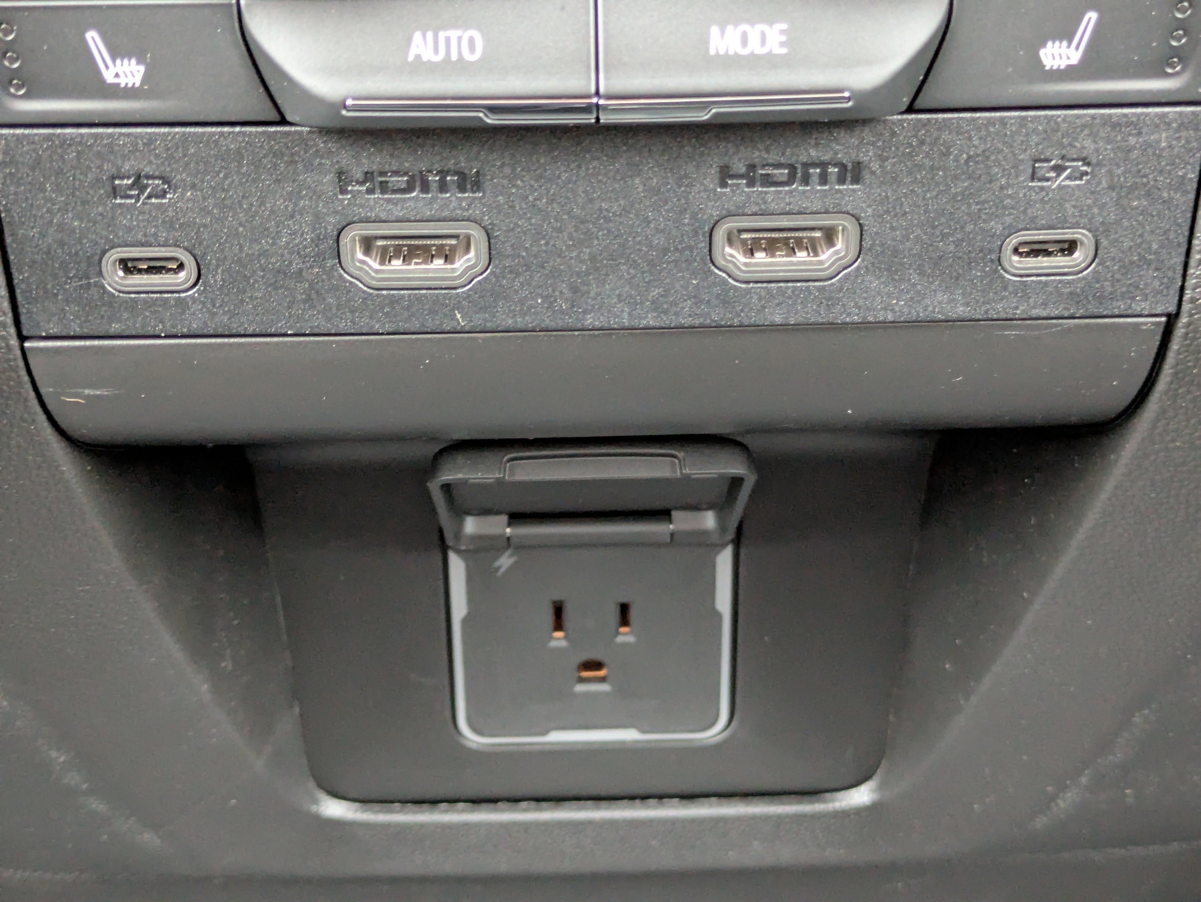 - Two 2-channel wireless headphones with 2 HDMI ports on the back of the center console