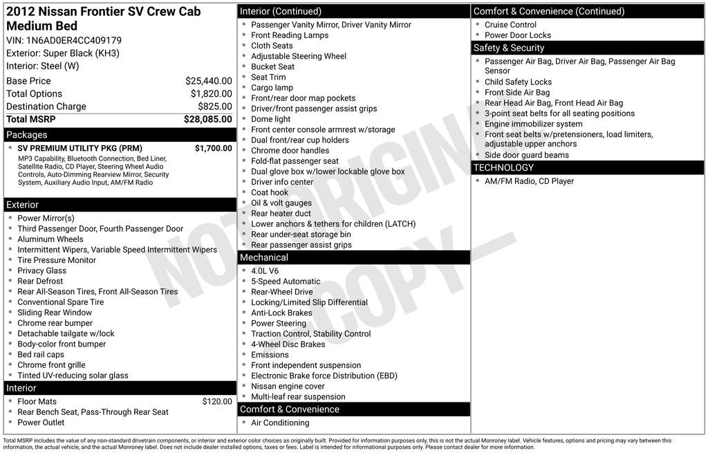 Whether you're hauling gear, navigating rough terrain, or simply commuting in style, the 2012 Nissan Frontier SV is up for the challenge. Experience the perfect balance of power, utility, and refinement - visit our showroom today and let us put you behind the wheel of this exceptional mid-size pickup.