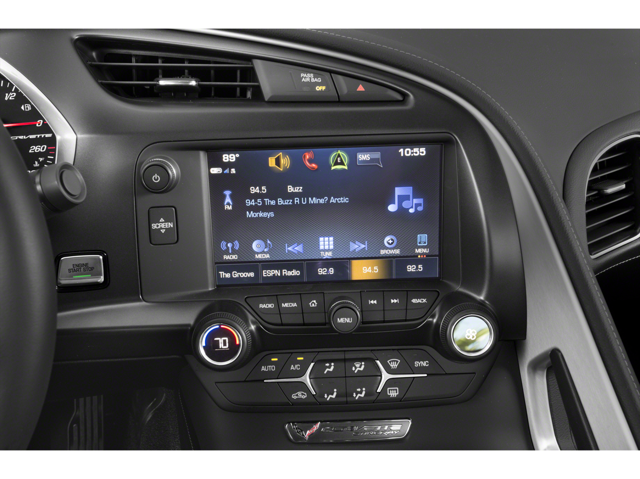 Vaden is pleased to offer this Black 2019 Chevrolet Corvette Stingray with Jet Black Leather... Beautifully equipped with Preferred Equipment Group 1LT, 2.41 Limited-Slip Rear Axle Ratio, 4-Wheel Disc Brakes, 8-Way Driver & Passenger Seat Adjusters, 9 Speakers, ABS brakes, Air Conditioning, Alloy wheels, AM/FM radio: SiriusXM, Apple CarPlay/Android Auto, Automatic temperature control, Bose Premium 9-Speaker Audio System Feature, Bumpers: body-color, Compass, Delay-off headlights, Driver door bin, Driver vanity mirror, Dual front impact airbags, Dual front side impact airbags, Electronic Stability Control, Emergency communication system, Exterior Parking Camera Rear, Four wheel independent suspension, Front anti-roll bar, Front Bucket Seats, Front Center Armrest, Front dual zone A/C, Front License Plate Bracket, Front reading lights, Fully automatic headlights, GT Bucket Seats, Heated door mirrors, High-Intensity Discharge Headlights, Illuminated entry, Leather Shift Knob, Leather steering wheel, Low tire pressure warning, Occupant sensing airbag, Outside temperature display, Painted Body-Color Carbon Fiber Removable Roof Panel, Panic alarm, Passenger door bin, Passenger vanity mirror, Performance Data & Video Recorder, Performance Exhaust, Power door mirrors, Power driver seat, Power passenger seat, Power steering, Power windows, Radio data system, Radio: Chevrolet Infotainment System w/Navigation, Rear anti-roll bar, Rear window defroster, Remote keyless entry, Remote Vehicle Starter System, Speed control, Speed-sensing steering, Spoiler, Sport steering wheel, Steering wheel mounted audio controls, Tachometer, Telescoping steering wheel, Tilt steering wheel, Traction control, Trip computer, Variably intermittent wipers, Voltmeter, and Wheels: 19" x 8.5" Fr & 20" x 10" Rr 5-Split Spoke! Approved customer communicated additions (repairing minor cosmetic flaw, added accessories, etc.) Prior to delivery will be subject to additional charges. ***All of Our Vaden New Car Pricing is Transparent, the price you see is the price you pay!!**** Bluetooth®/HANDS FREE PHONE, CLEAN CARFAX, SIRIUS XM SATELLITE RADIO, NAVIGATION, POWER PACKAGE, BACKUP CAMERA, HEATED SEATS, PREMIUM WHEELS, NAVIGATION SYSTEM NAV GPS, SOUND PACKAGE - SIRIUS XM SATELLITE RADIO, Preferred Equipment Group 1LT.
