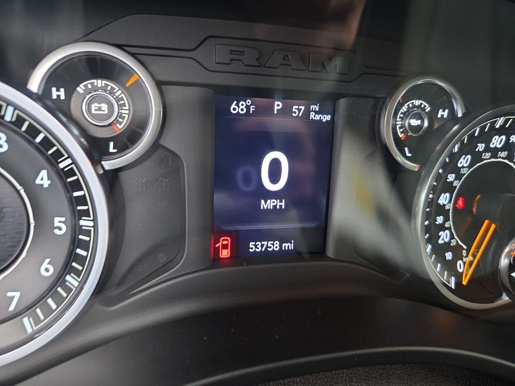Start the Ram 1500 from inside with remote start. Bluetooth® technology is built into this unit, keeping your hands on the steering wheel and your focus on the road. Our dealership has already run the CARFAX report and it is clean. A clean CARFAX is a great asset for resale value in the future. Protect the vehicle from unwanted accidents with a cutting edge backup camera system. The Ram 1500 has a V6, 3.6L high output engine. The Ram 1500 has an elegant black exterior finish. The Ram 1500 has four wheel drive capabilities. The high efficiency automatic transmission shifts smoothly and allows you to relax while driving. This 1/2 ton pickup has fog lights for all weather conditions. This 1/2 ton pickup is equipped with a gasoline engine. The Electronic Stability Control will keep you on your intended path. This 1/2 ton pickup features cruise control for long trips.