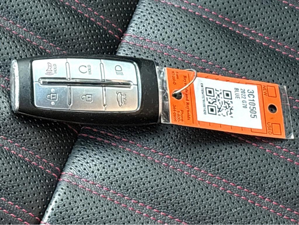 Vaden is pleased to offer this Tasman Blue 2022 Genesis G70 3.3T with Black w/ Red Trim Leather... Beautifully equipped with Sport Advanced Package (Alloy Pedals, Dark Chrome Grille & Daylight Opening, Door & Console Aluminum Trim w/Sport Pattern, Forward/Reverse Parking Distance Warning, Front Side Acoustic Laminated Glass, Genesis Digital Key, Option Group 03, Power Driver Seat Side Bolster & Cushion Extension, Radio: AM/FM/SiriusXM/HD Lexicon Prem Audio System, Variable Exhaust Valve System, Ventilated Front Seats, Wheels: 19" x 8.0J Fr & 19" x 8.5J Rr Sport Alloy, Wide Sunroof, and Wireless Device Charging), 4-Wheel Disc Brakes, 6 Speakers, ABS brakes, Air Conditioning, Alloy wheels, AM/FM radio: SiriusXM, Android Auto & Apple CarPlay, Anti-whiplash front head restraints, Auto High-beam Headlights, Auto-dimming door mirrors, Auto-dimming Rear-View mirror, Automatic temperature control, Brake assist, Bumpers: body-color, Delay-off headlights, Driver door bin, Driver vanity mirror, Dual front impact airbags, Dual front side impact airbags, Electronic Stability Control, Emergency communication system: Genesis Connected Services, Exterior Parking Camera Rear, Four wheel independent suspension, Front anti-roll bar, Front Bucket Seats, Front Center Armrest, Front dual zone A/C, Front reading lights, Fully automatic headlights, Garage door transmitter: HomeLink, Heated door mirrors, Heated front seats, Heated Multi-Adjustable Front Bucket Seats, Illuminated entry, Knee airbag, Leather Seating Surfaces, Low tire pressure warning, Memory seat, Navigation System, Occupant sensing airbag, Outside temperature display, Overhead airbag, Overhead console, Panic alarm, Passenger door bin, Passenger vanity mirror, Power door mirrors, Power driver seat, Power passenger seat, Power steering, Power windows, Radio: AM/FM/SiriusXM/HD Audio System, Rain sensing wipers, Rear anti-roll bar, Rear reading lights, Rear seat center armrest, Rear window defroster, Remote keyless entry, Security system, Speed control, Speed-sensing steering, Speed-Sensitive Wipers, Split folding rear seat, Steering wheel memory, Steering wheel mounted audio controls, Tachometer, Telescoping steering wheel, Tilt steering wheel, Traction control, Trip computer, Turn signal indicator mirrors, Variably intermittent wipers, and Wheels: 19" x 8.0J Fr & 19" x 8.5J Rr Alloy! APPLE CAR PLAY - ANDROID CAR, Bluetooth®, NAVIGATION SYSTEM NAV GPS, BACKUP CAMERA, SOUND PACKAGE - SIRIUS XM SATELLITE RADIO, SUNROOF / MOONROOF, LEATHER SEATS, POWER PACKAGE, CLIMATE PACKAGE, REAR CLIMATE PACKAGE, HEAT PACKAGE, POWER MIRROR PACKAGE, CLEAN CARFAX, Alloy Pedals, Dark Chrome Grille & Daylight Opening, Door & Console Aluminum Trim w/Sport Pattern, Forward/Reverse Parking Distance Warning, Front Side Acoustic Laminated Glass, Genesis Digital Key, Option Group 03, Power Driver Seat Side Bolster & Cushion Extension, Radio: AM/FM/SiriusXM/HD Lexicon Prem Audio System, Sport Advanced Package, Variable Exhaust Valve System, Ventilated Front Seats, Wheels: 19" x 8.0J Fr & 19" x 8.5J Rr Sport Alloy, Wide Sunroof, Wireless Device Charging.