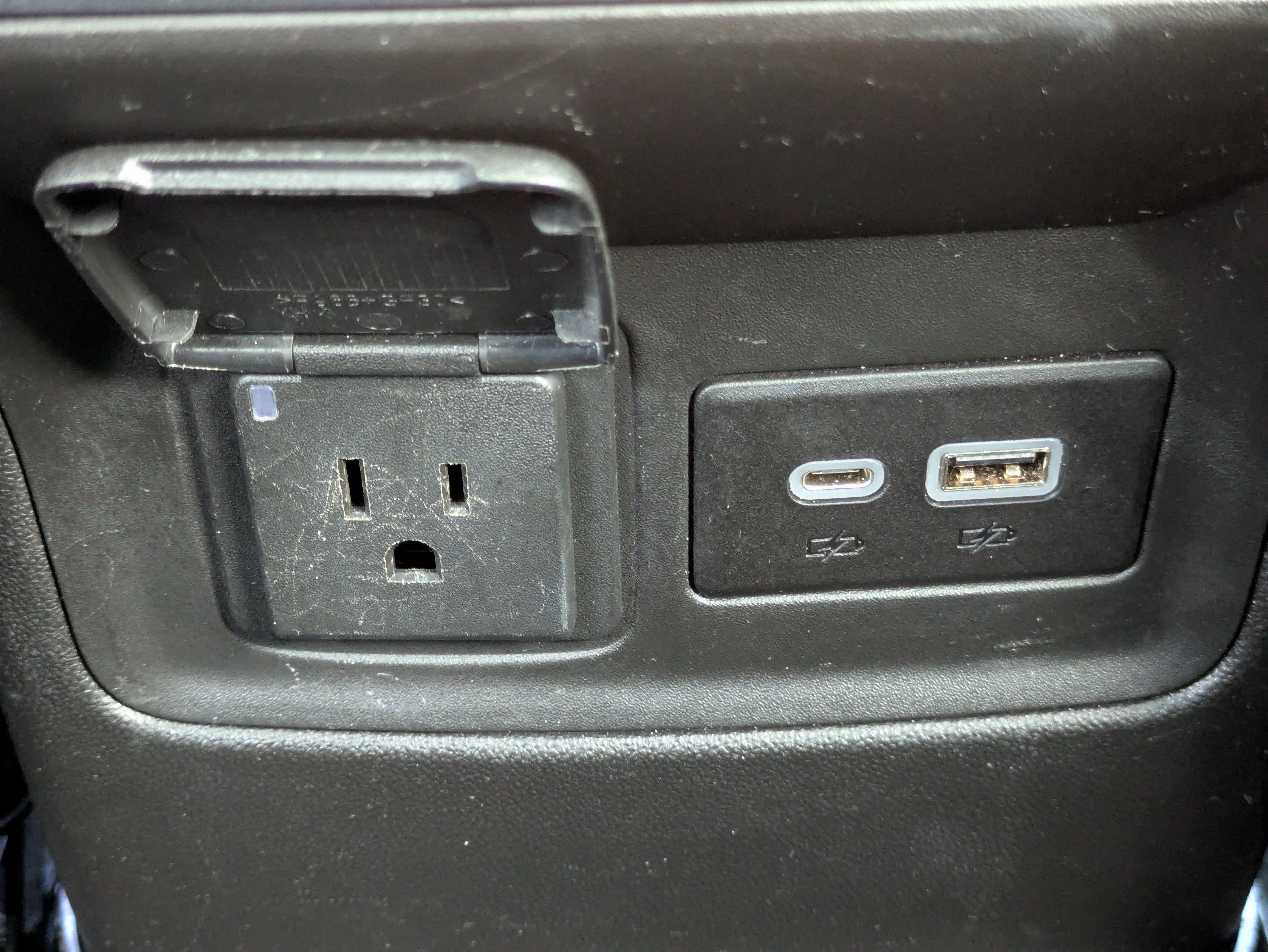 - Power outlets one located in the center stack under the climate controls and one located in the rear cargo area