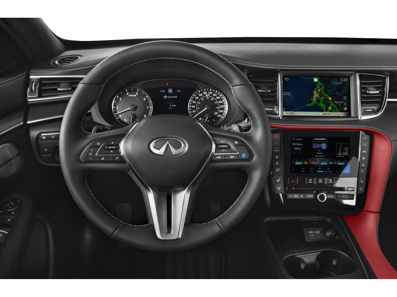 Vaden is pleased to offer 2023 INFINITI QX50 SPORT in Radiant White, Beautifully equipped with all the essentials and then some! 12 Speakers, 4-Wheel Disc Brakes, 5.846 Axle Ratio, ABS brakes, Air Conditioning, Alloy wheels, AM/FM radio: SiriusXM, Auto High-beam Headlights, Auto-dimming Rear-View mirror, Automatic temperature control, Bose Premium Audio System, Brake assist, Bumpers: body-color, CD player, Climate Controlled Front Bucket Seats, Delay-off headlights, Driver door bin, Driver vanity mirror, Dual front impact airbags, Dual front side impact airbags, Electronic Stability Control, Emergency communication system: INFINITI InTouch (1-year complimentary trial), Exclusive Paint - Dynamic Sunstone Red, Floor Mats, Four wheel independent suspension, Front anti-roll bar, Front Bucket Seats, Front Center Armrest, Front dual zone A/C, Front fog lights, Front reading lights, Fully automatic headlights, Garage door transmitter: HomeLink, Heated door mirrors, Heated front seats, Heated steering wheel, Illuminated entry, Illuminated Kick Plates, Knee airbag, Leather Shift Knob, Leather steering wheel, Literature Kit, Low tire pressure warning, Memory seat, Navigation system: INFINITI InTouch Navigation, Occupant sensing airbag, Outside temperature display, Overhead airbag, Overhead console, Panic alarm, Passenger door bin, Passenger vanity mirror, Power door mirrors, Power driver seat, Power Liftgate, Power moonroof, Power passenger seat, Power steering, Power windows, Radio data system, Rear anti-roll bar, Rear reading lights, Rear seat center armrest, Rear side impact airbag, Rear window defroster, Rear window wiper, Remote keyless entry, Security system, Semi-Aniline Leather-Appointed Seat Trim, Speed control, Speed-sensing steering, Speed-Sensitive Wipers, Splash Guards (Set of 4), Split folding rear seat, Spoiler, Steering wheel mounted audio controls, Tachometer, Telescoping steering wheel, Tilt steering wheel, Traction control, Trip computer, Turn signal indicator mirrors, Variably intermittent wipers, Ventilated front seats, and Wheels: 20" Black Painted Machine Finished.