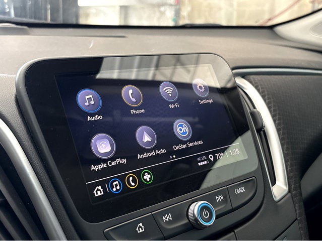 - Audio system, Chevrolet Infotainment 3 system, 8" diagonal color touchscreen, AM/FM stereo. Additional features for compatible phones include: Bluetooth® audio streaming for 2 active devices, voice command pass-through to phone, Apple CarPlay and Android Auto capable.